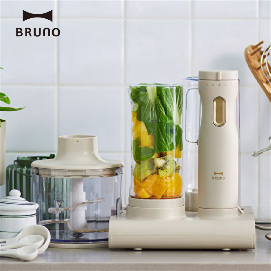 - 本体、スタンド(×2)、ブレンダーボトル、ブレンダースティック、ホイッパー(ビーター×2)、チョッパー(おろしプレート付き)、スパチュラ、ホイッパーケース、クリーニングブラシ