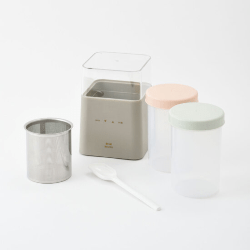 下準備をしてボタンを押すだけ。ヨーグルトはもちろん、塩麹、甘酒、チーズ、発酵あんこ、フルーツビネガーなど、いろいろな発酵フードがおうちで簡単につくれるコンパクトサイズの発酵メーカーです。