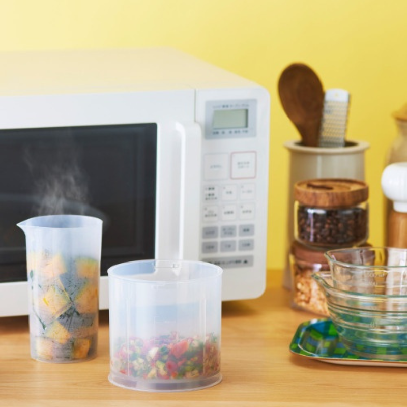 付属の電子レンジ対応チョッパーボトルとブレンダーカップを使えば、下ごしらえからそのまま加熱調理までおまかせ。