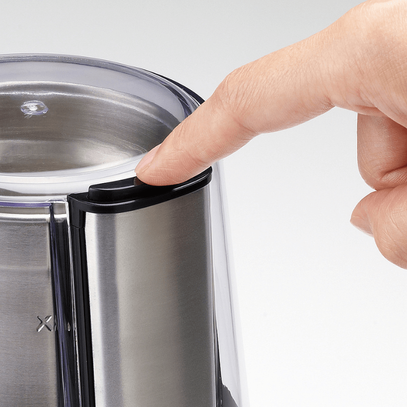 クリアカバーから覗き込み、スイッチを断続的に押して、好みの挽き加減にしていきます。