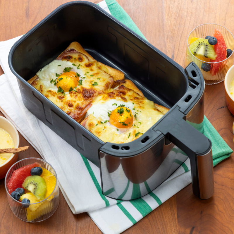 トースト、ソーセージ、野菜を入れて同時に調理すれば、バランスが取れた朝食が短時間で完成。
