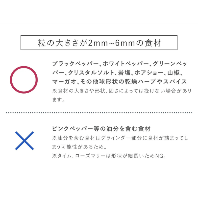また、摩擦熱が生じにくいため、熱で飛びやすい胡椒の香りを保ちます。