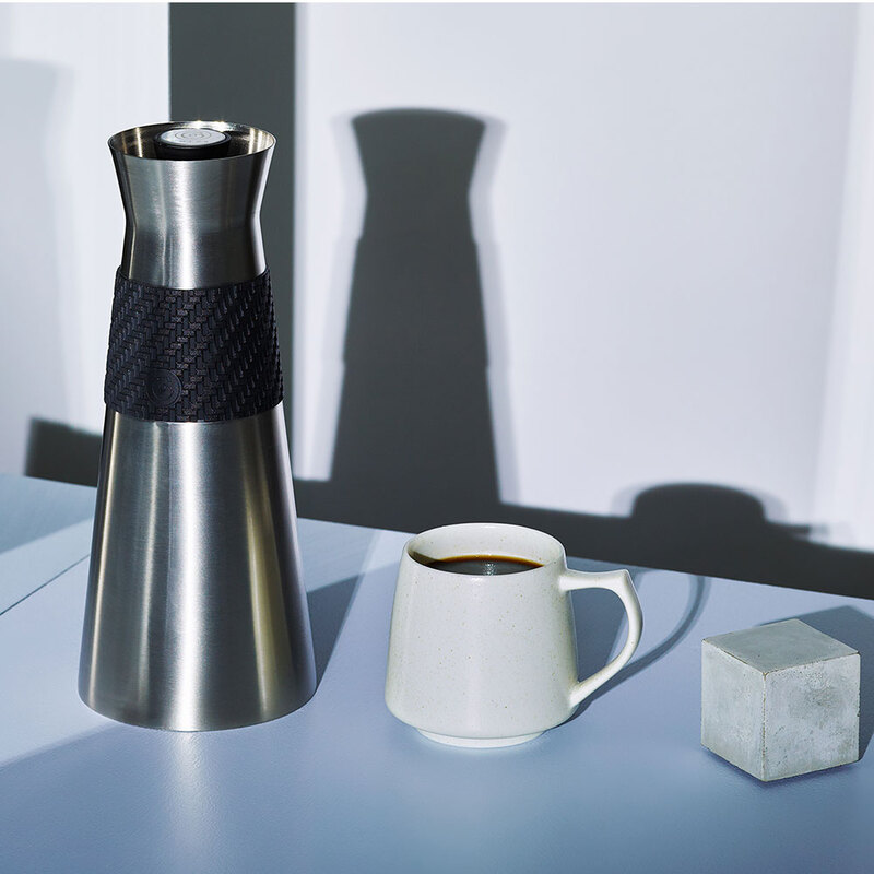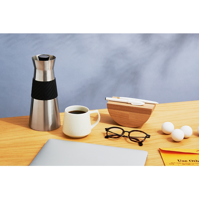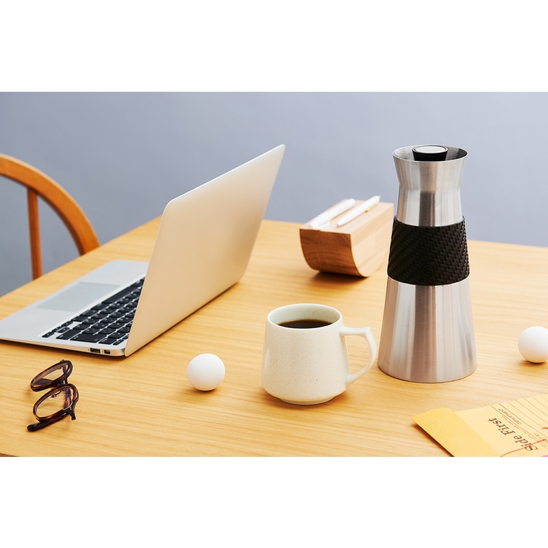ハンドルがない"フラスコ"のようなスリムなボトルデザインは、インテリアにも合わせやすく、サイドテーブルや卓上にもマッチします。
