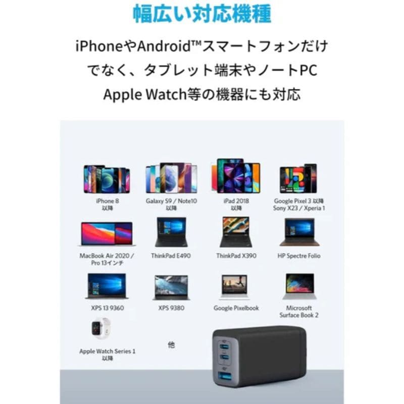 iPhoneやiPad、MacBook、Apple WatchなどのApple製品を含む、幅広い機器へフルスピード充電できます。