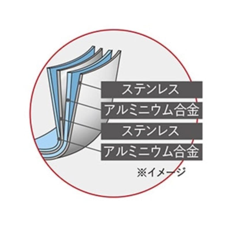 本体は蓄熱性の高いステンレスと熱伝導性に優れたアルミニウムの全面4層クラッド構造で、