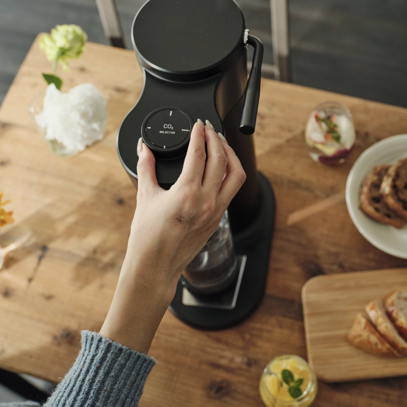 電源不要、4段階からお好みの炭酸強度を選んで自動注入