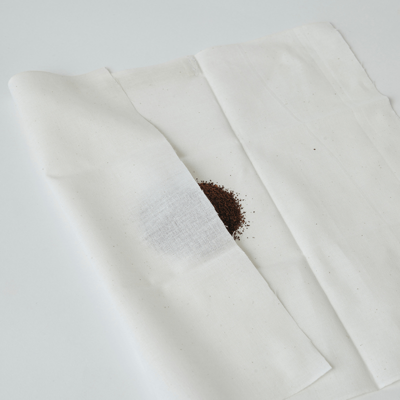 コーヒー粉を包んで紐に通し、所定量の水に浸します。