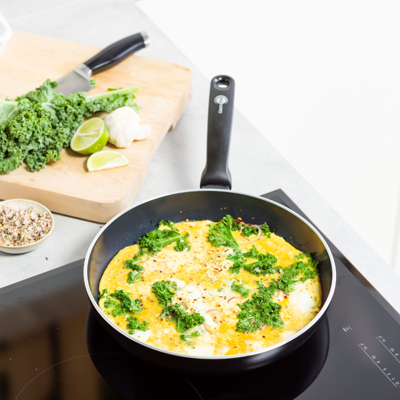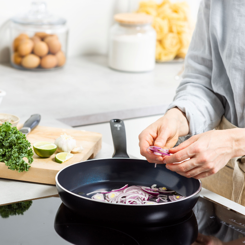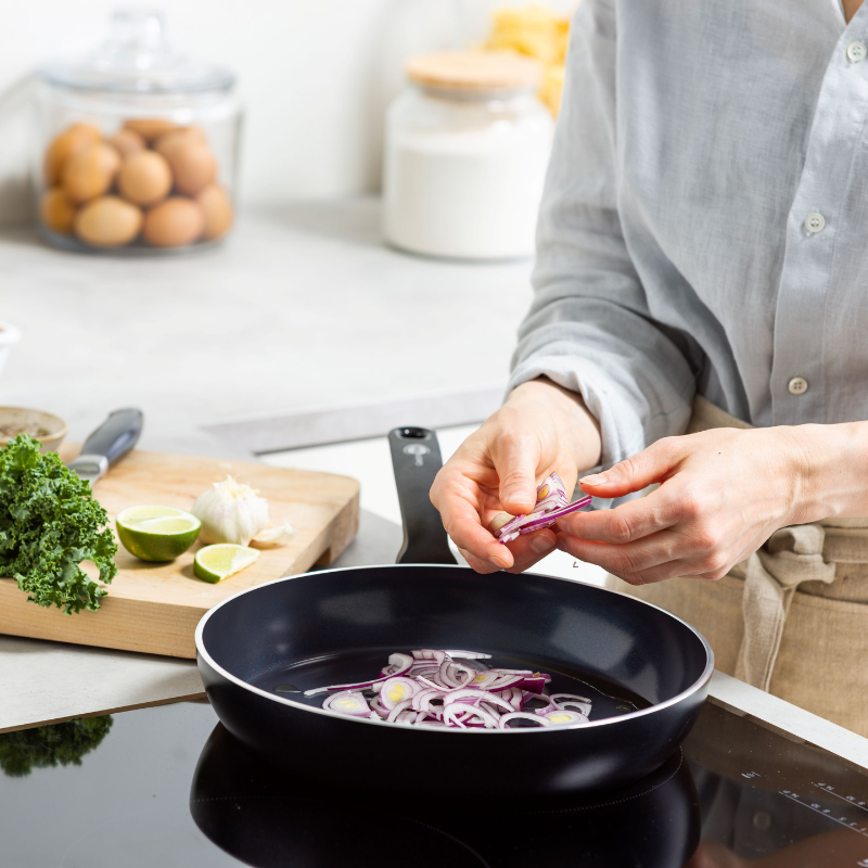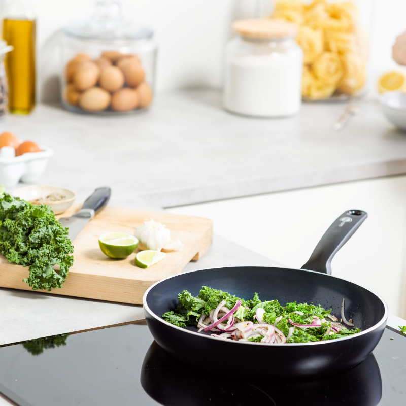 グリーンパンは熱伝導性が良いので「弱火から中火」で十分調理が可能です。