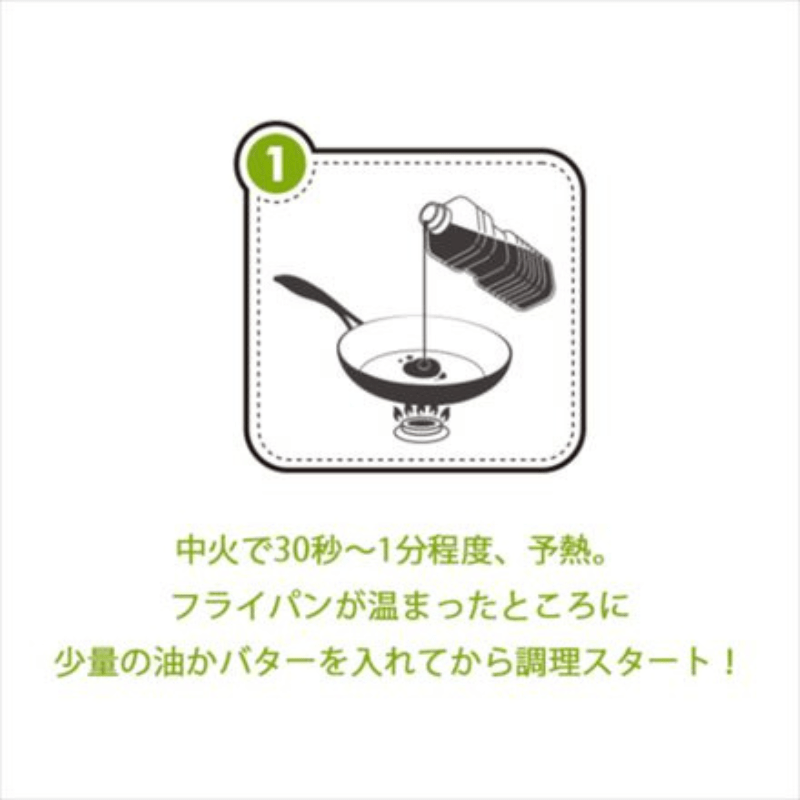 調理(炒めもの・焼き物)をする際は、必ず中火で30秒~1分程度、予熱してください。