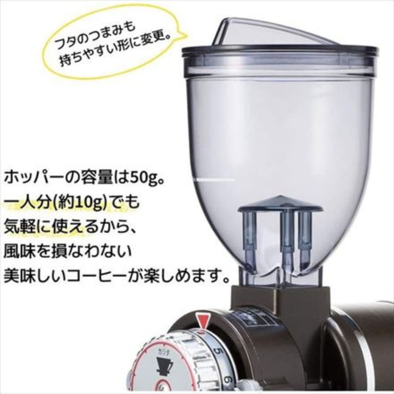 ミル刃の回転を少なくして摩擦熱を抑制し、コーヒー本来の風味を損ね難いので、プロのバリスタもこの方式のミルを使用していることが多いです。