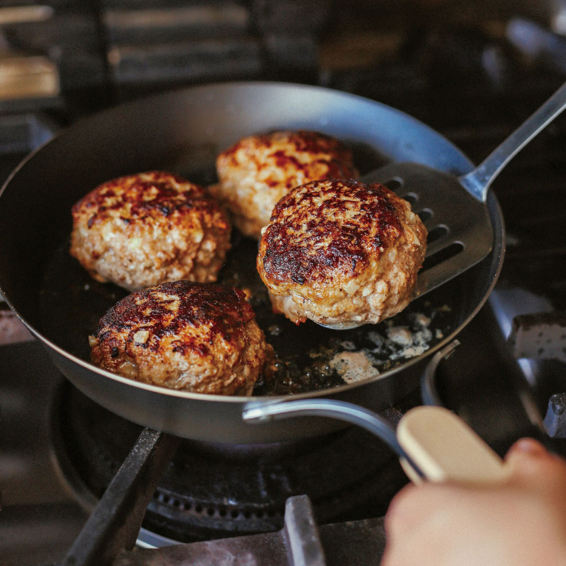 強火でさっと調理ができる鉄材料だから、肉の旨味を逃さずに香ばしい焼き上がりに。