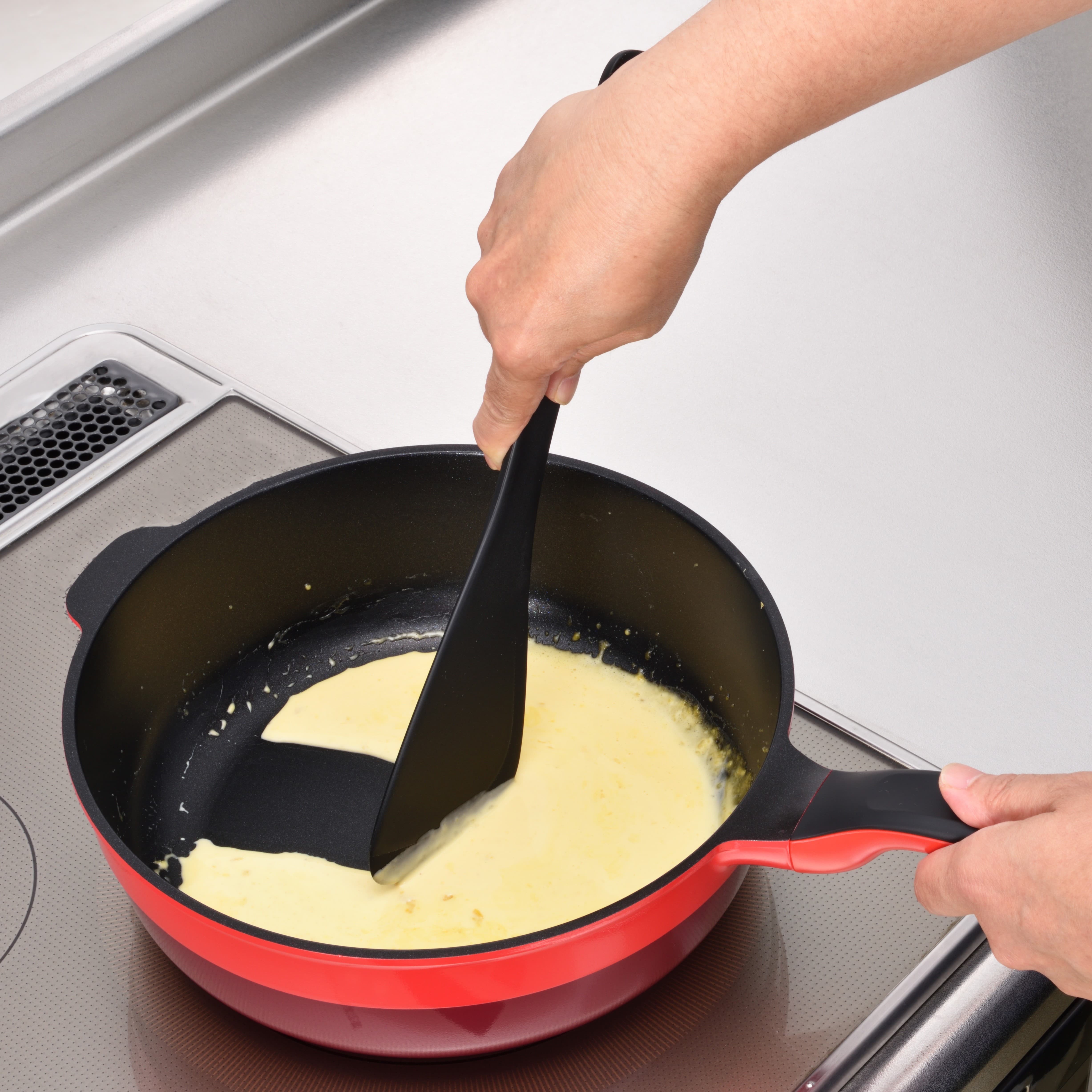 炒めやすく、ゴムベラとしての便利さを合わせ持つ機能性ヘラです。