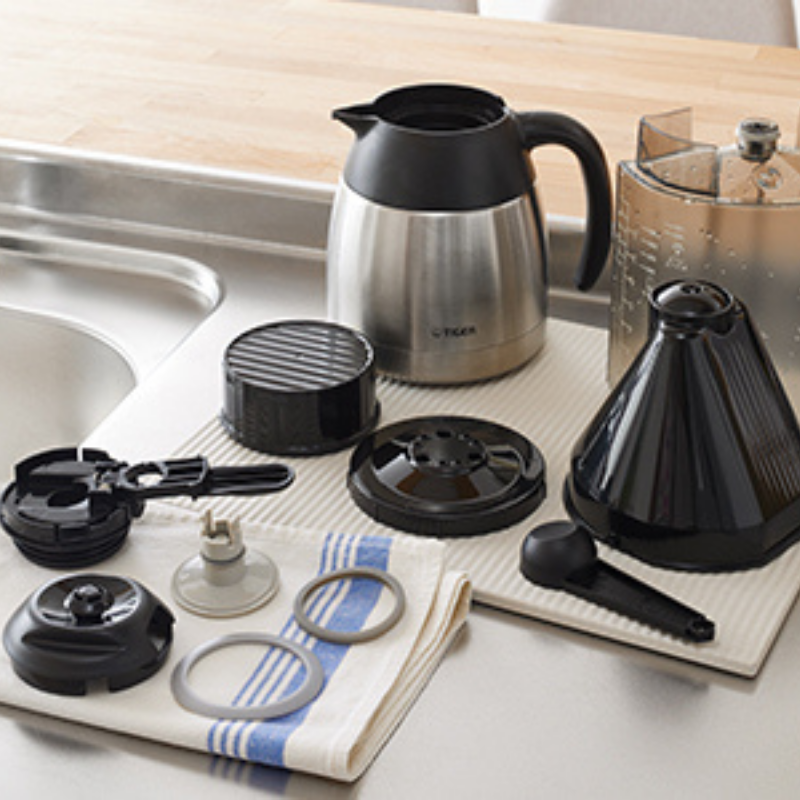 真空断熱ステンレスサーバーのふたは分解して洗えるので、いつも清潔にお使いいただけます。