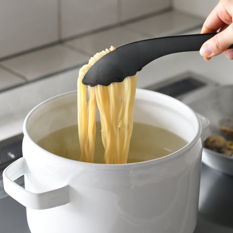 柄を長く設計しているため、パスタの茹で上げや炒めものなどの加熱調理中でも、