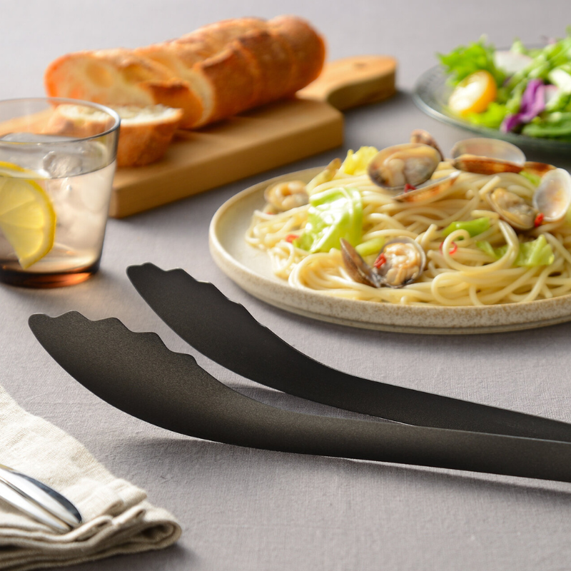 トングを逆さに置くだけで先端がテーブルから浮き上がるので、調理中の「ちょっと置き」も衛生的で場所を選びません。