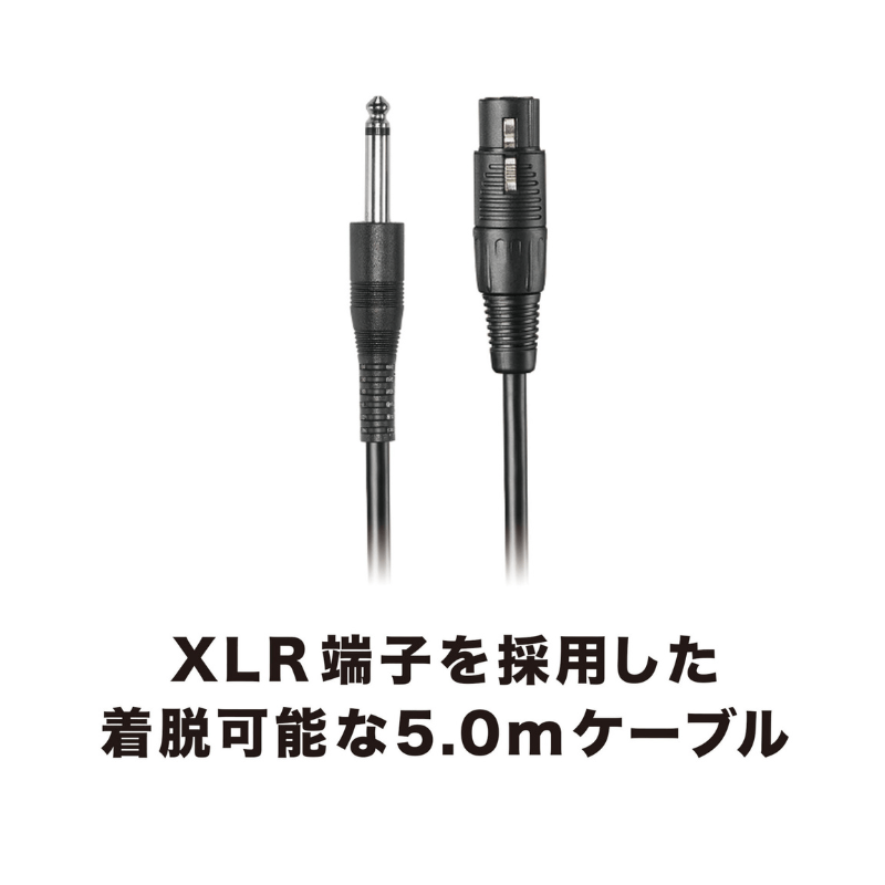取り外し可能な5.0mケーブル(XLR端子 - 6.3mm標準モノラルプラグ)で、