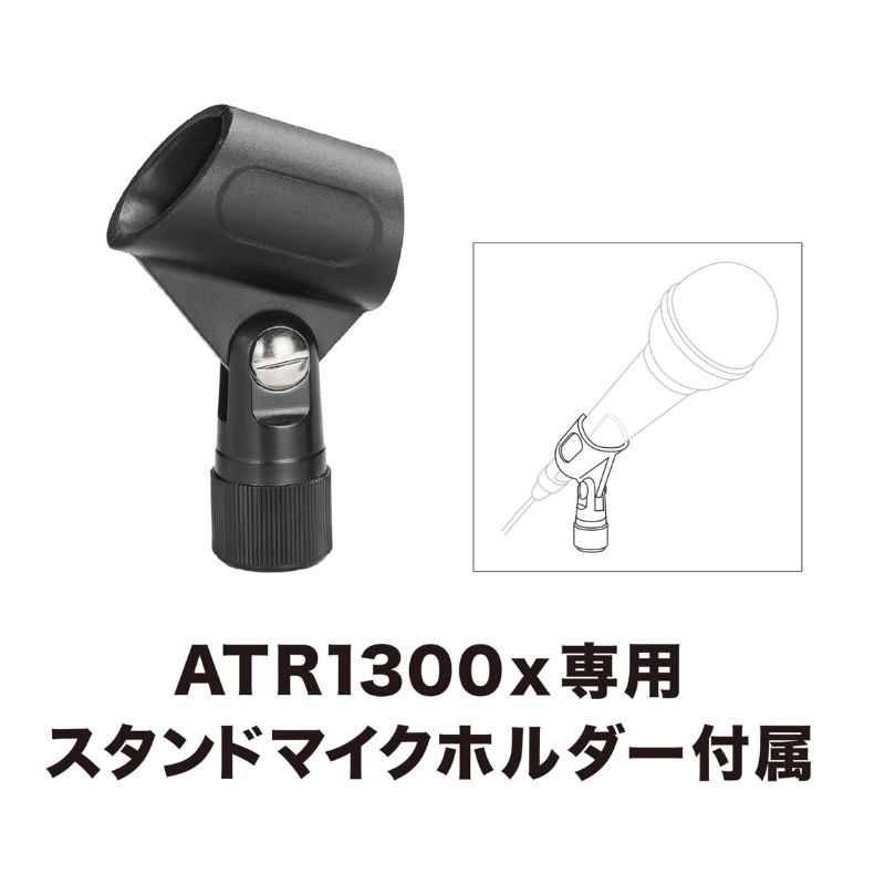 - 5.0mケーブル(φ6.3mm標準モノラルプラグ-3ピンXLR-Fタイプ)、マイクホルダー(ネジ径5/8インチ、ピッチ27山)