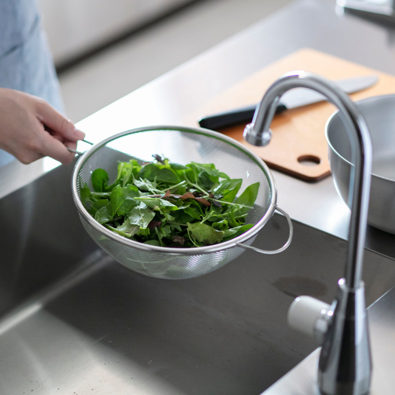 - ◎ご使用前に食器用洗剤などでよく洗ってからお使いください。◎洗浄後は乾いた布で水気をふき取ってください。◎サビや腐食の原因となりますので、漂白剤をご使用にならないでください。◎たたいたり引っ張ったりすると変形しますのでご注意ください。
