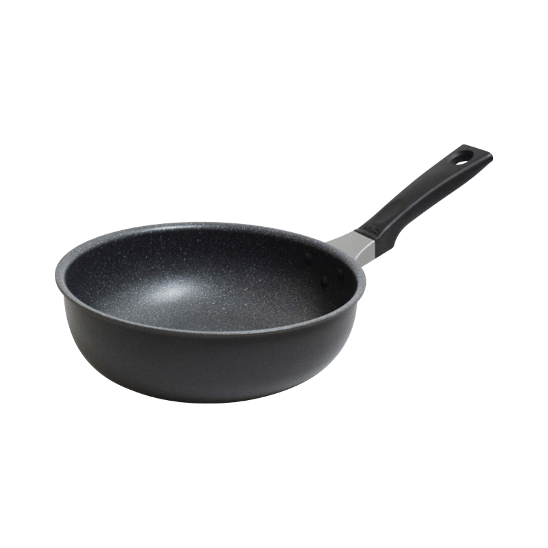 お料理を返しやすい「返軽パン」がリニューアル!先端部分が高く設計された便利なフライパンです。内面はこびりつきにくくお手入れが簡単なフッ素樹脂加工です。