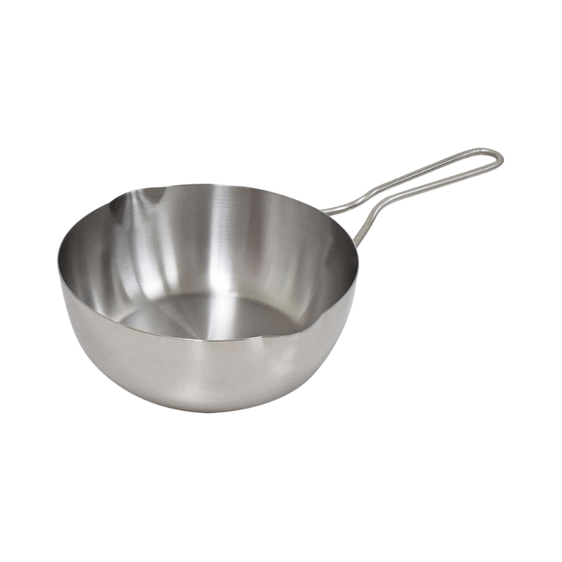 スピニング製法で理想的な板厚に仕上げており厚い底面が熱を蓄え、側面は徐々に薄くなっているため熱が伝わりやすくなっています。ステンレス単層構造は保温性に優れ油の色がわかりやすく油量の目安になる目盛りと左右のどちらにも使いやすい注ぎ口がついていますので揚げ物調理にも便利です。