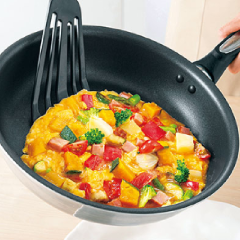 フライパン本体はステンレスとアルミの全面2層構造(エッグパンは全面3層)で抜群の熱効率を実現。