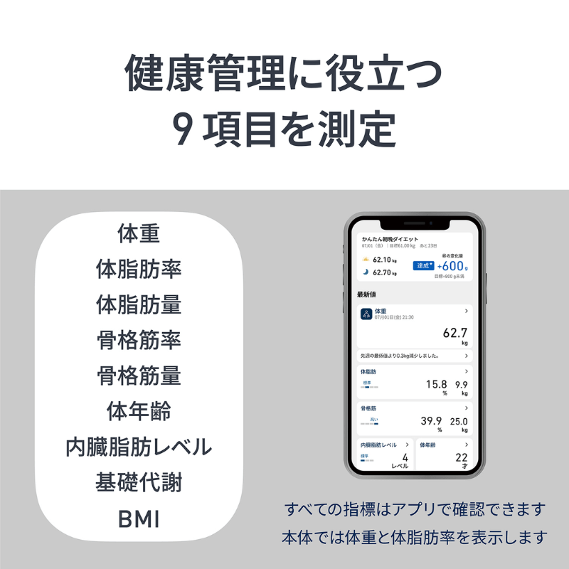 体重のみ測りたい時には靴下を脱ぐ必要もなく気軽に計測することができます。