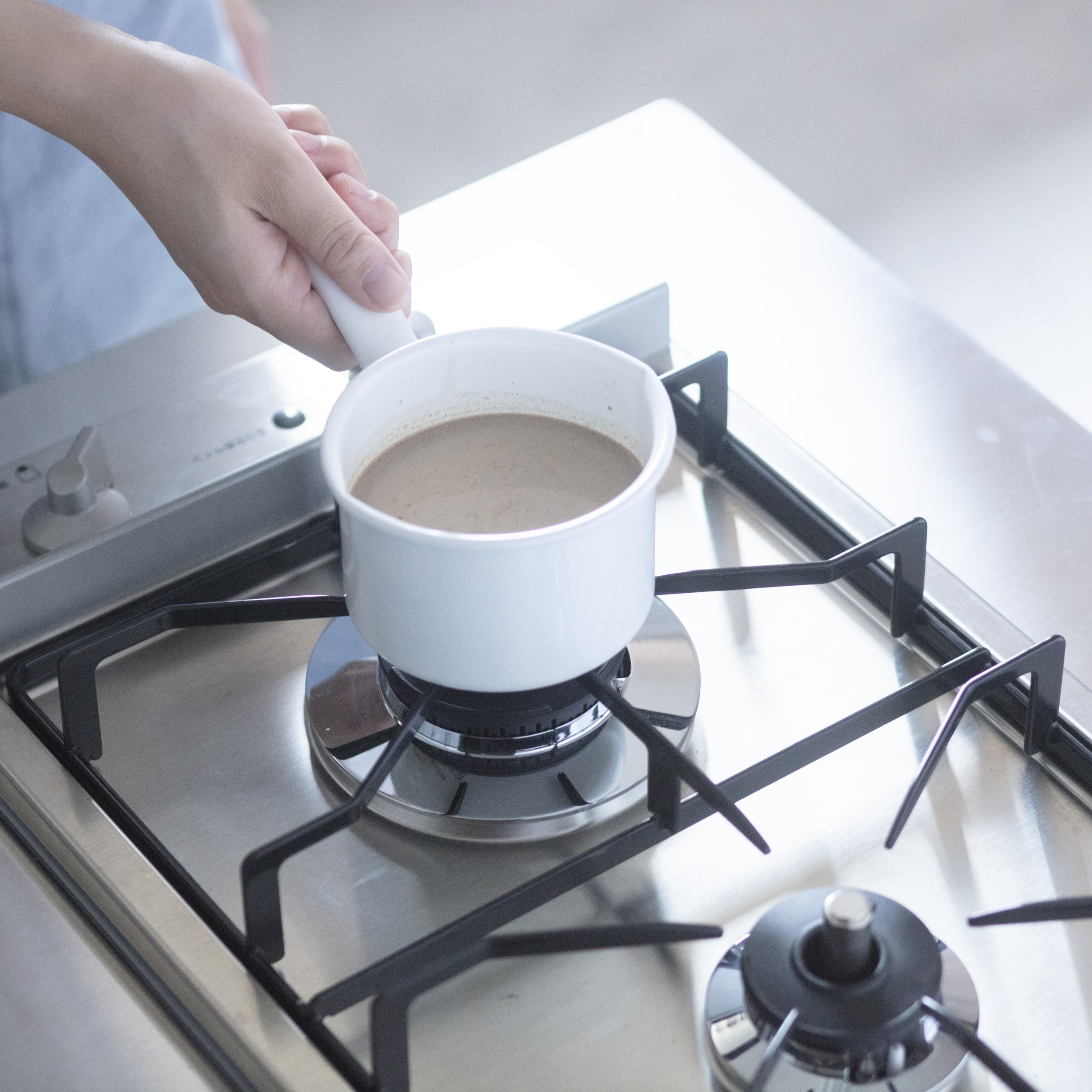 毎日の料理やお茶の時間にちょうど良い形とサイズにこだわって、野田琺瑯さんにつくってもらったミルクパンです。