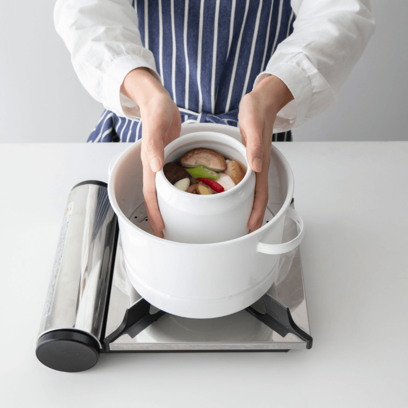 使いやすいサイズ(直径21cm)の蒸し鍋を野田琺瑯さんにつくっていただきました。