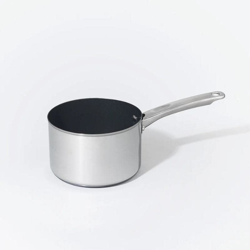 焦げ付きにくいノンステイック加工と熱くなりにくい中空ハンドル。