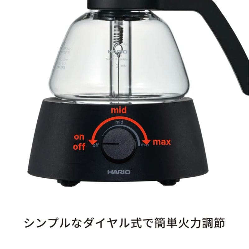 ダイヤル式の火力調整ができ加熱と抽出に適した火力を選ぶ事ができます。
