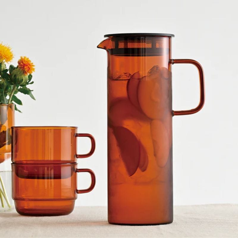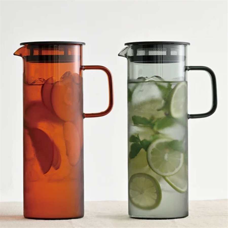 メッシュフィルター付きのフタがついたガラスピッチャー。