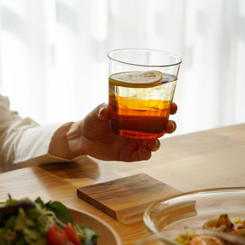 カラーガラスと透明ガラスを組み合わせたグラスです。
