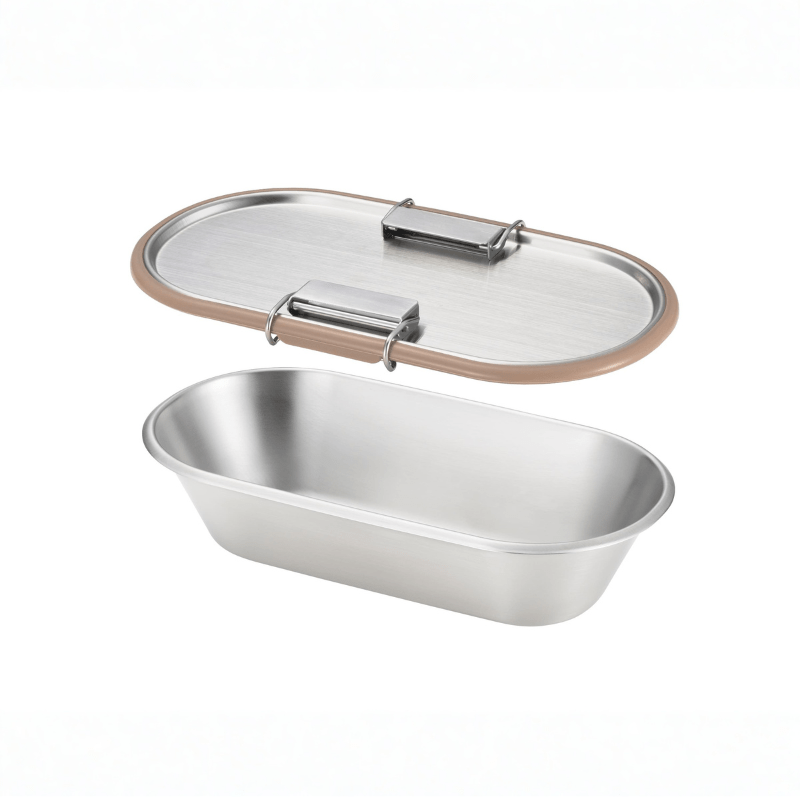 ・食材の臭いや色が付きにくいステンレス製のコンテナ。