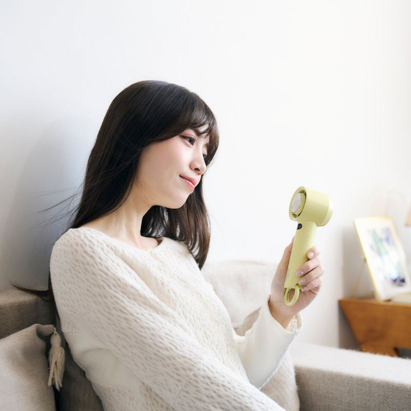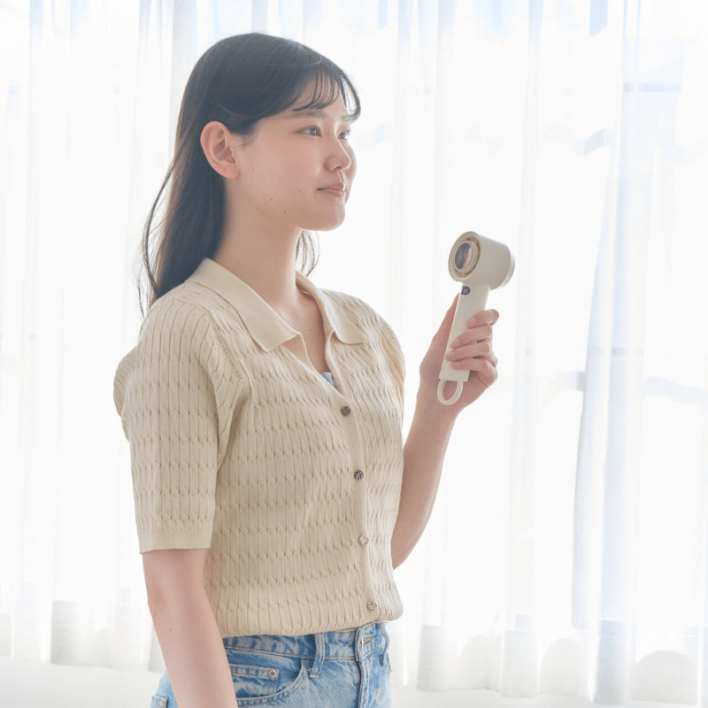 風量を100段階で微調整できるハイスペックモデルです。驚きのパワーを誇る大風量から、体に優しい微風まで自由自在。冷却プレートを直接手首などに当てて冷やす「接触冷感」も併用可能です。