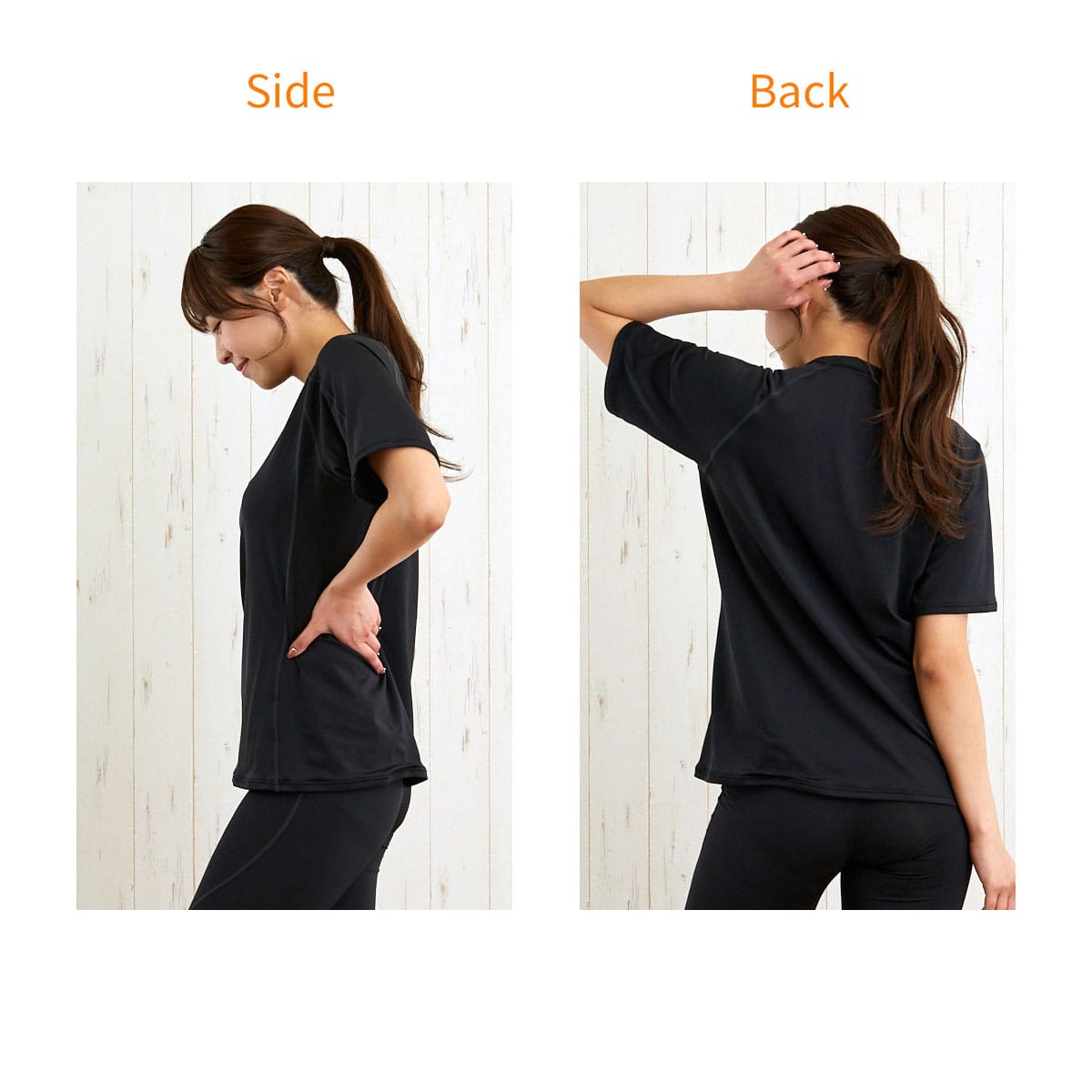 ウェアそのものが圧着タイプ(コンプレッションウェア)ではないので、体の締め付けもなく、“ゆるフィット”で、心地よく着用できます。