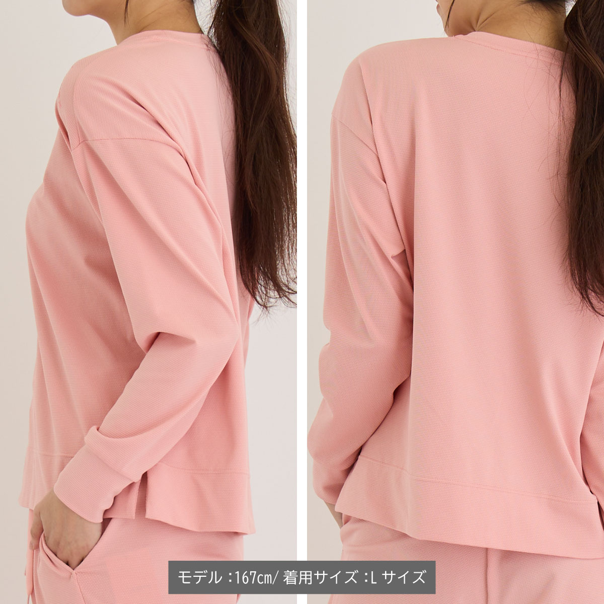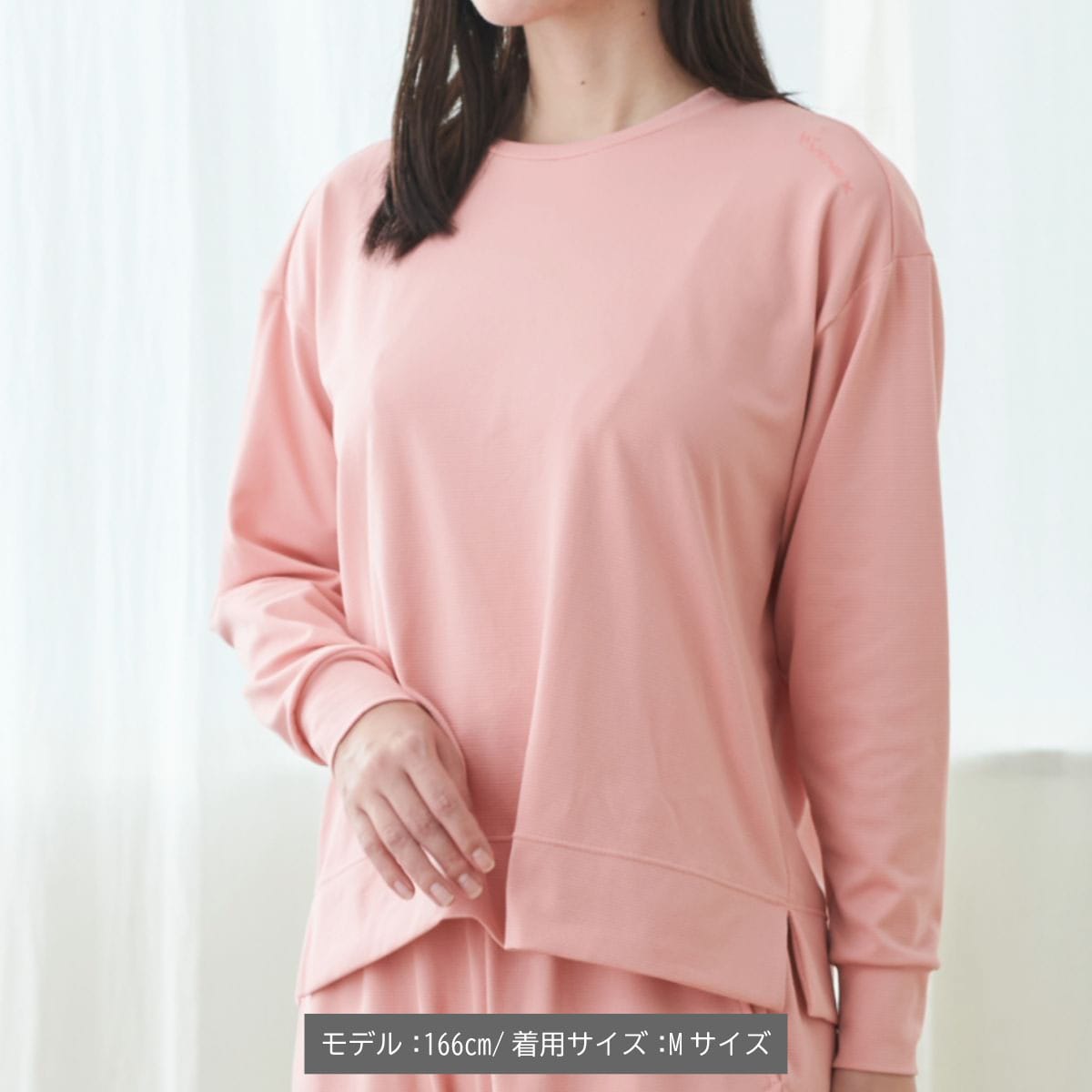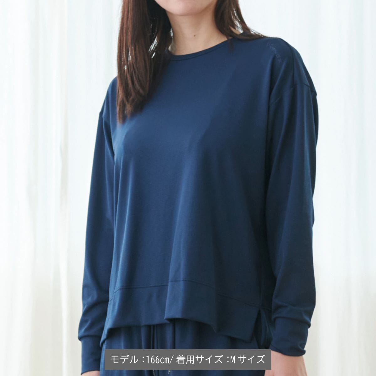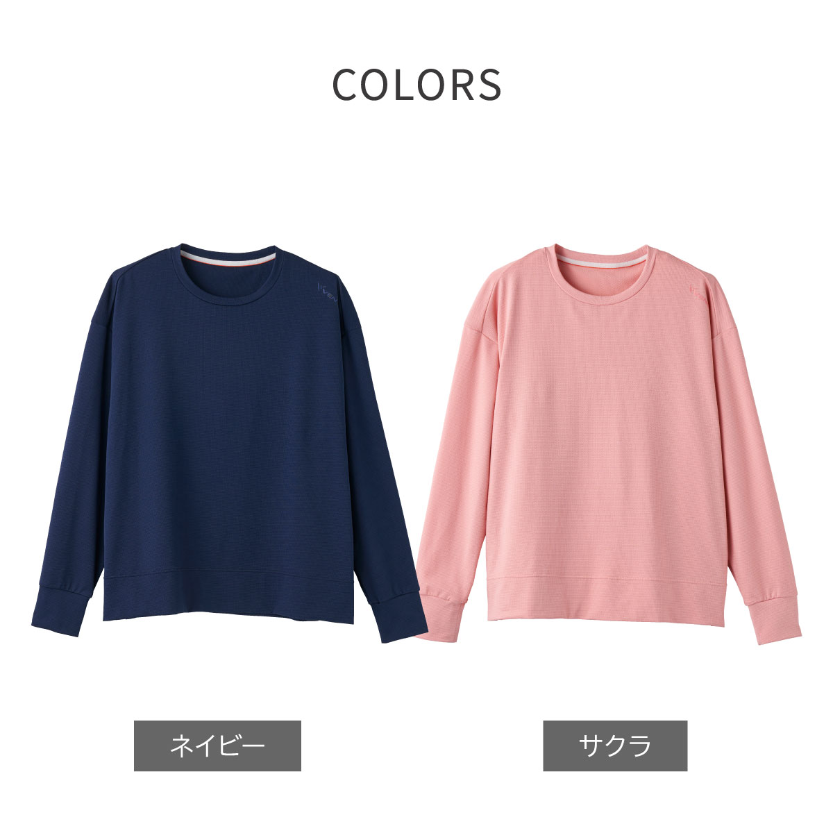 シンプルなクルーネック(丸首)タイプの長袖トップス。