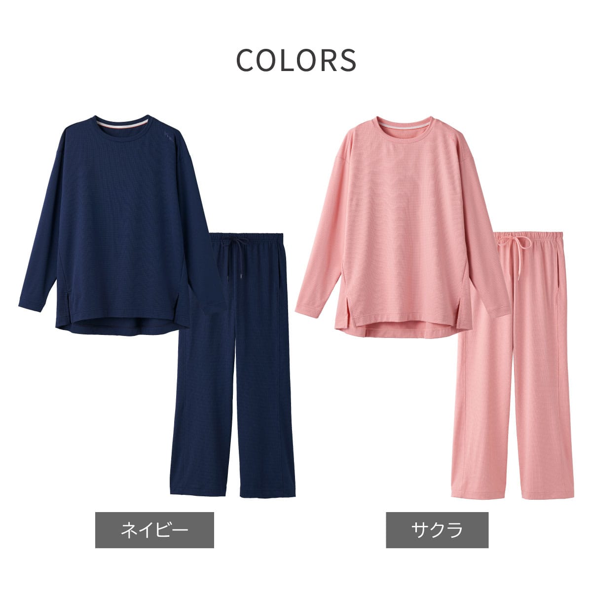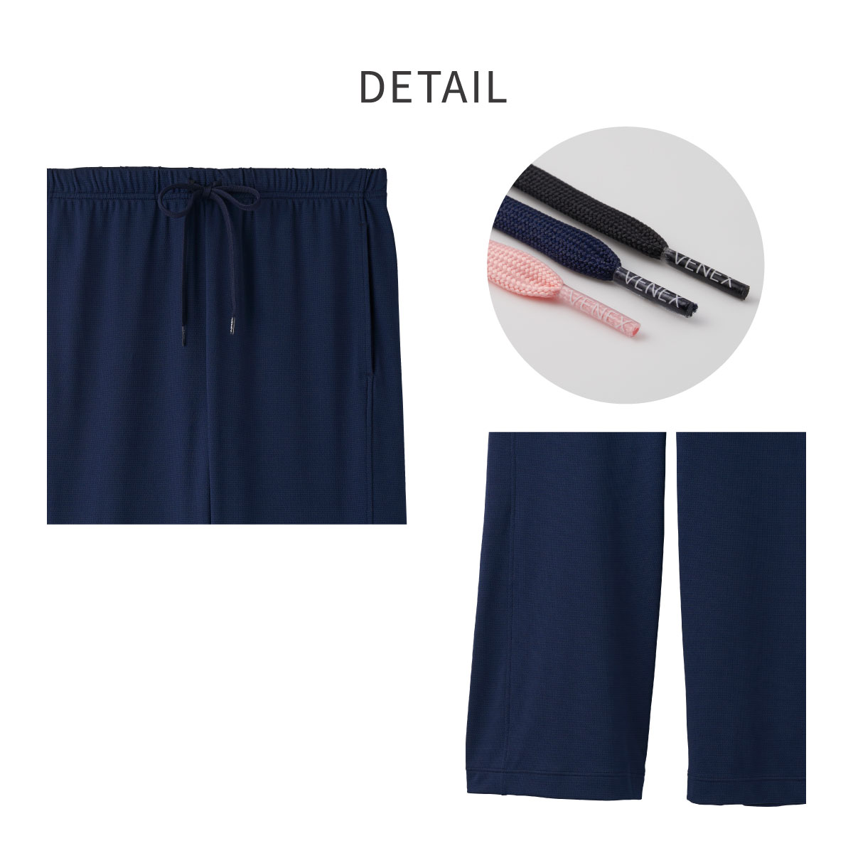 スリットポケットに加え、ウエストはロゴ入りスピンドルで調節が可能、デザイン・機能・着心地のよさが揃った上下セットです。