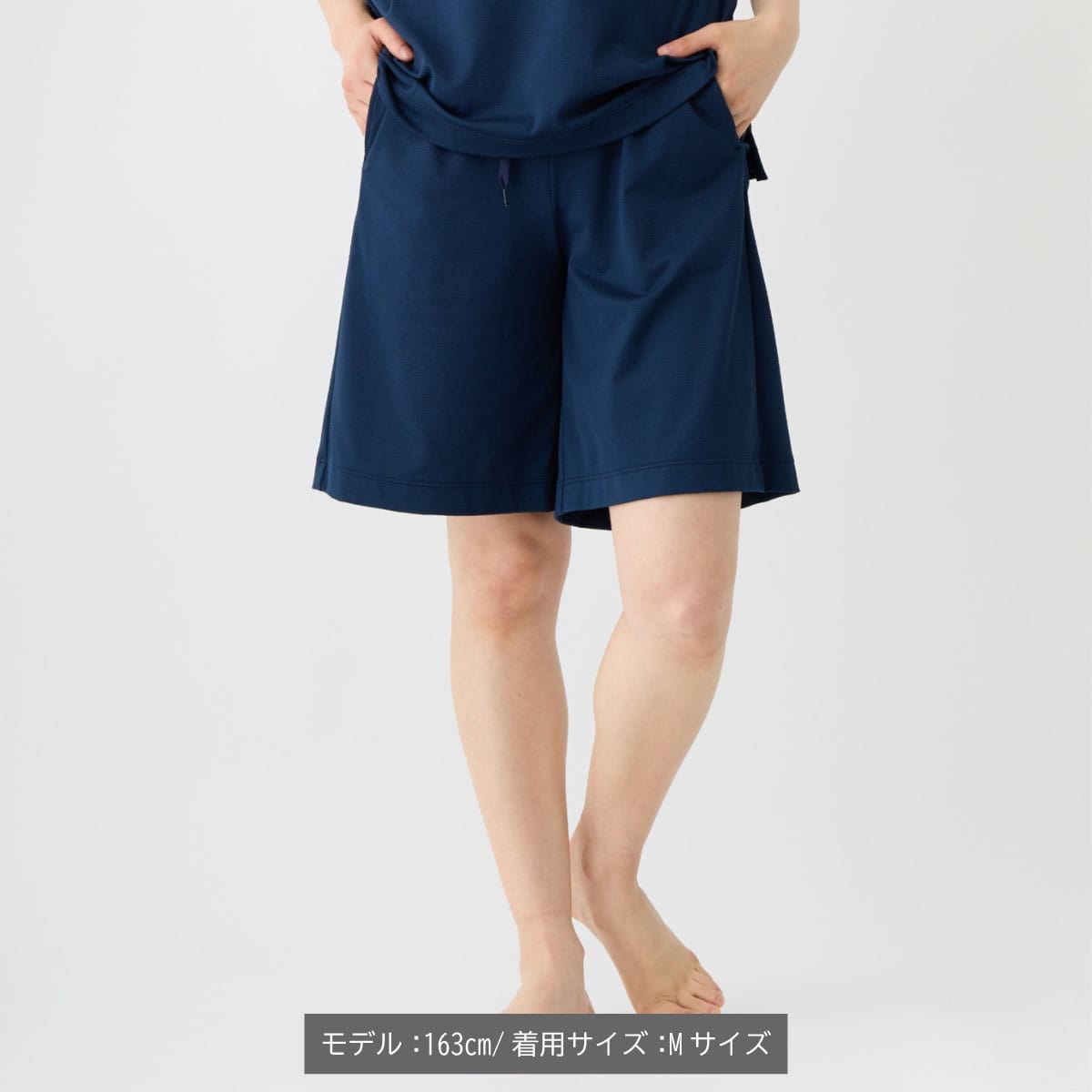 ゆるやかなフレアラインのハーフパンツは足元スッキリ、美シルエットで軽やかな履き心地のボトムスです。