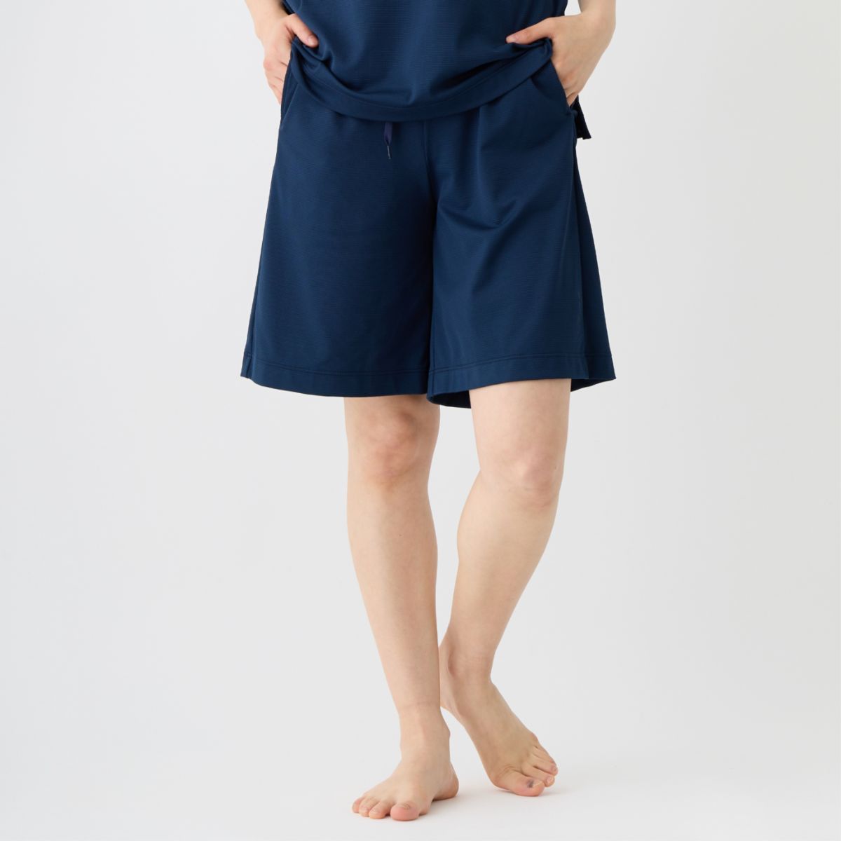 ゆるやかなフレアラインのハーフパンツは足元スッキリ、美シルエットで軽やかな履き心地のボトムスです。