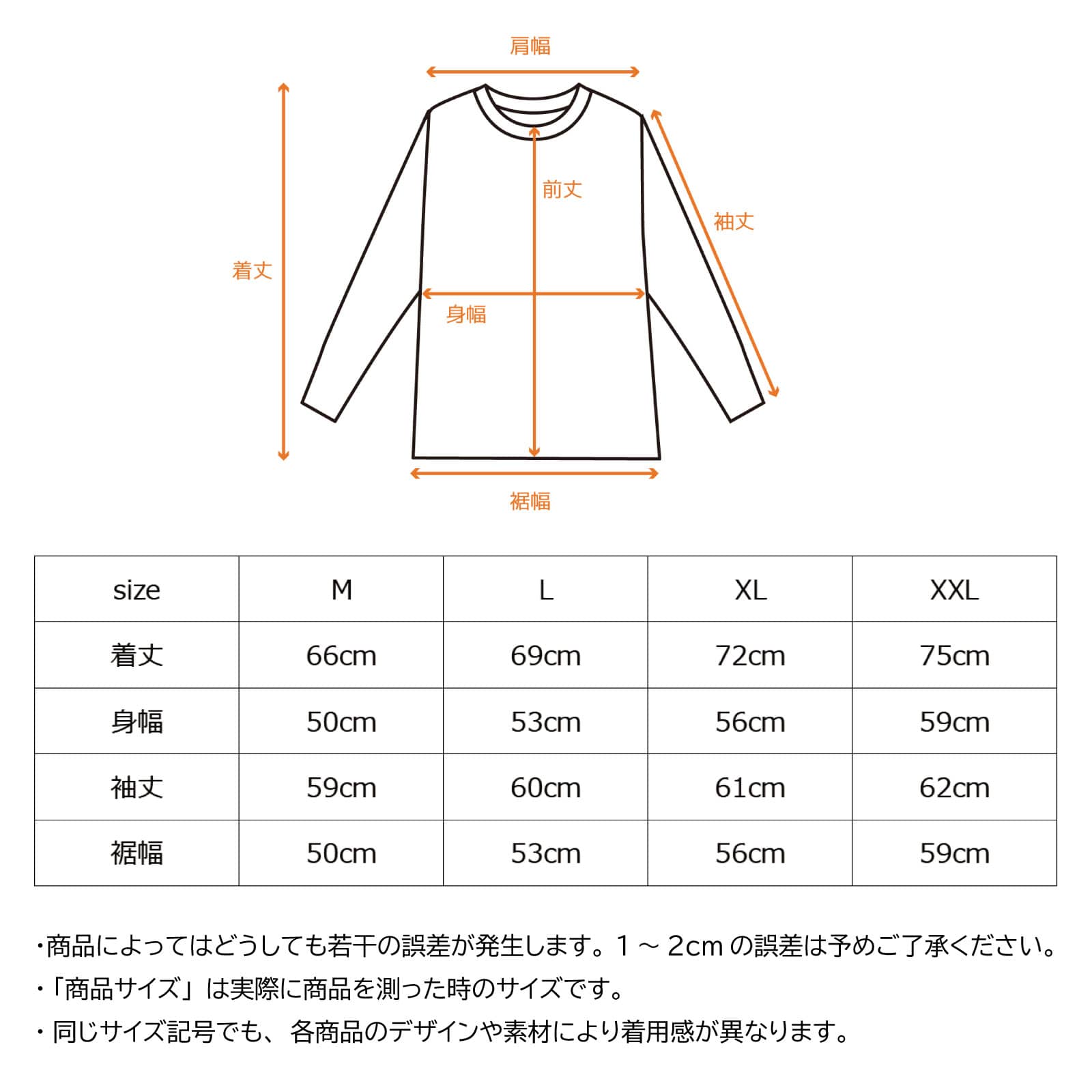 | 身幅 | 50cm | 53cm | 56cm | 59cm |