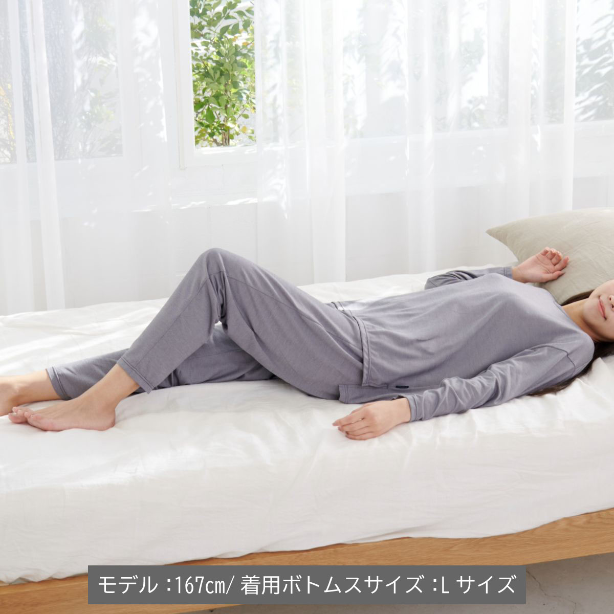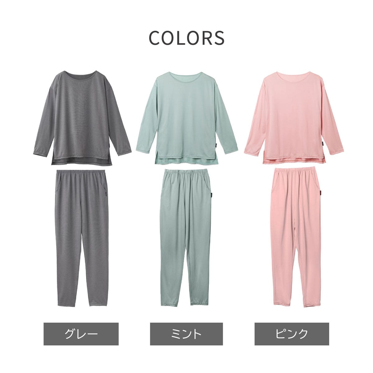 ひんやりさらさら。吸水性、接触冷感、吸放湿、高通気。涼しさを追求した夏限定のリカバリーウェア。レディースのカラーは爽やかな『ミント』、肌なじみのよい『ピンク』、スタイリッシュな新色『グレー』の3色からお選びいただけます。
