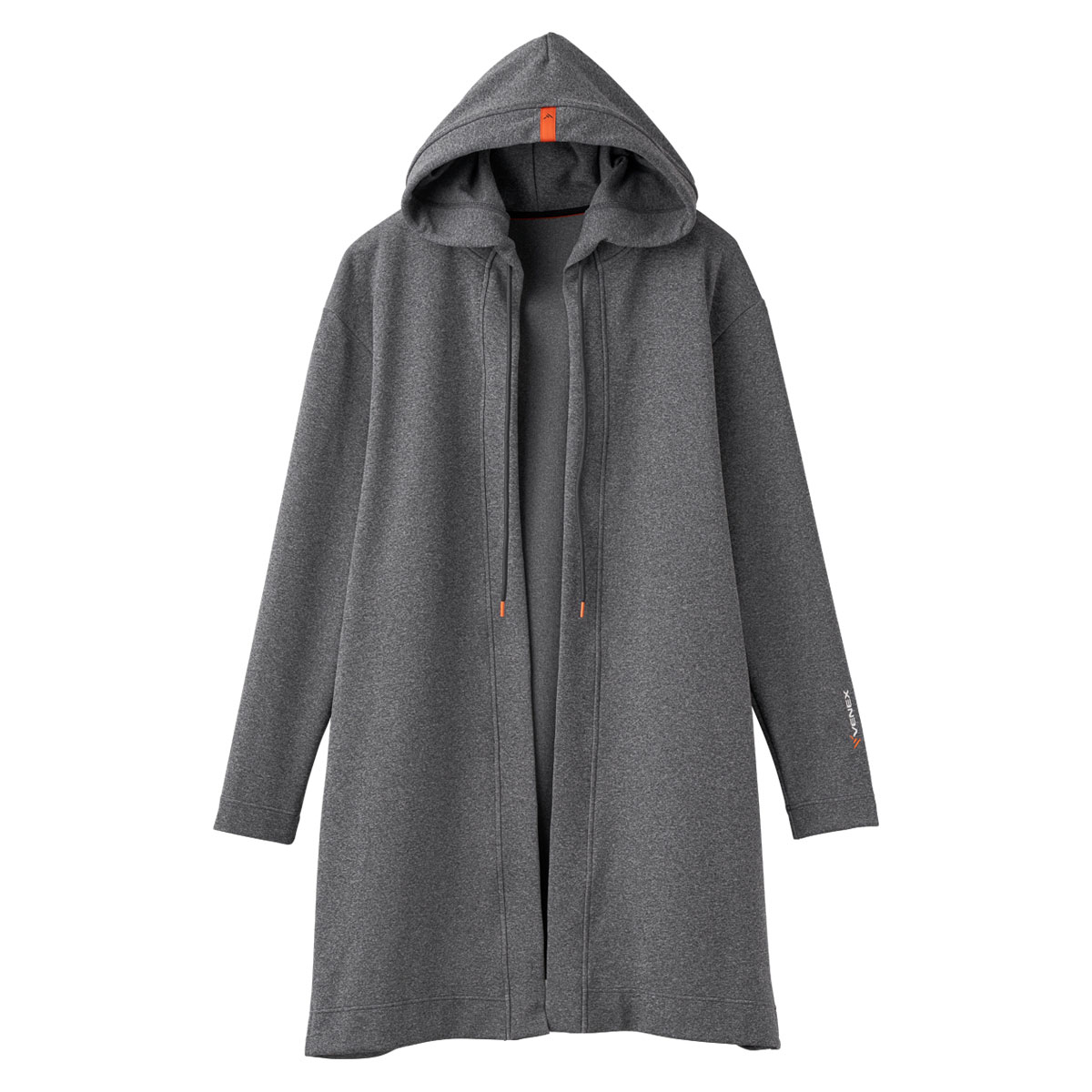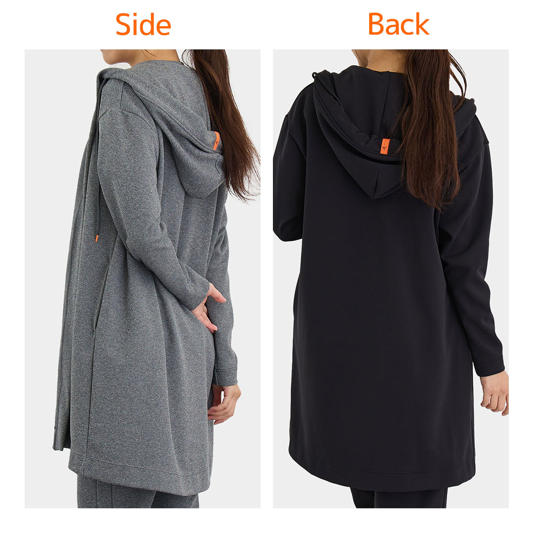 やわらかなストレッチ性ともちっとした感触でずっと包まれていたくなるような、とても心地のいいフード付きロングカーディガンです。