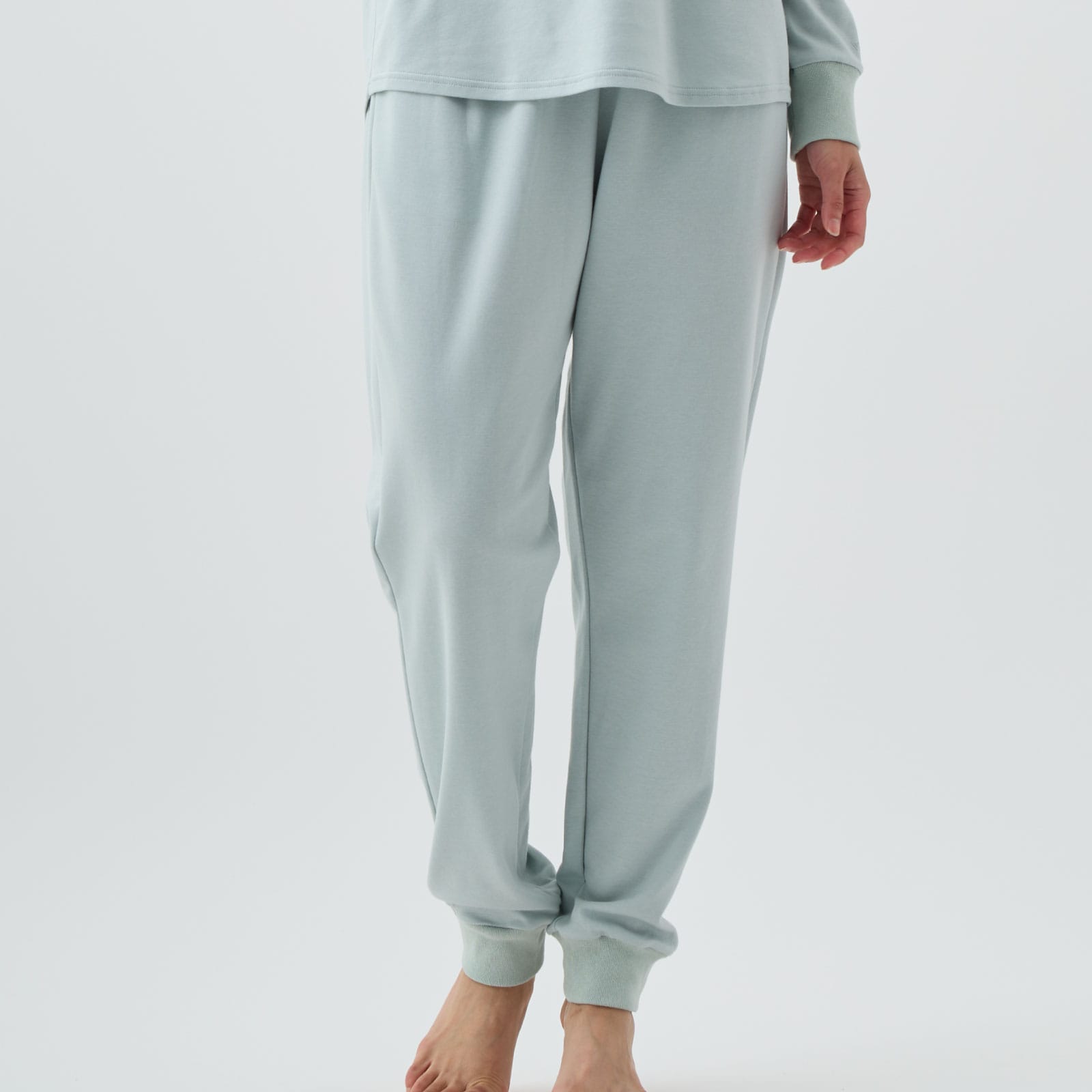 ゆったりとした腰回りなのに、綺麗に見えるスッキリシルエット。ウエストは紐で調節でき、サイドにはポケットが付いたジョガーパンツ。 裾口のリブがあたたかさをアップしてくれます。