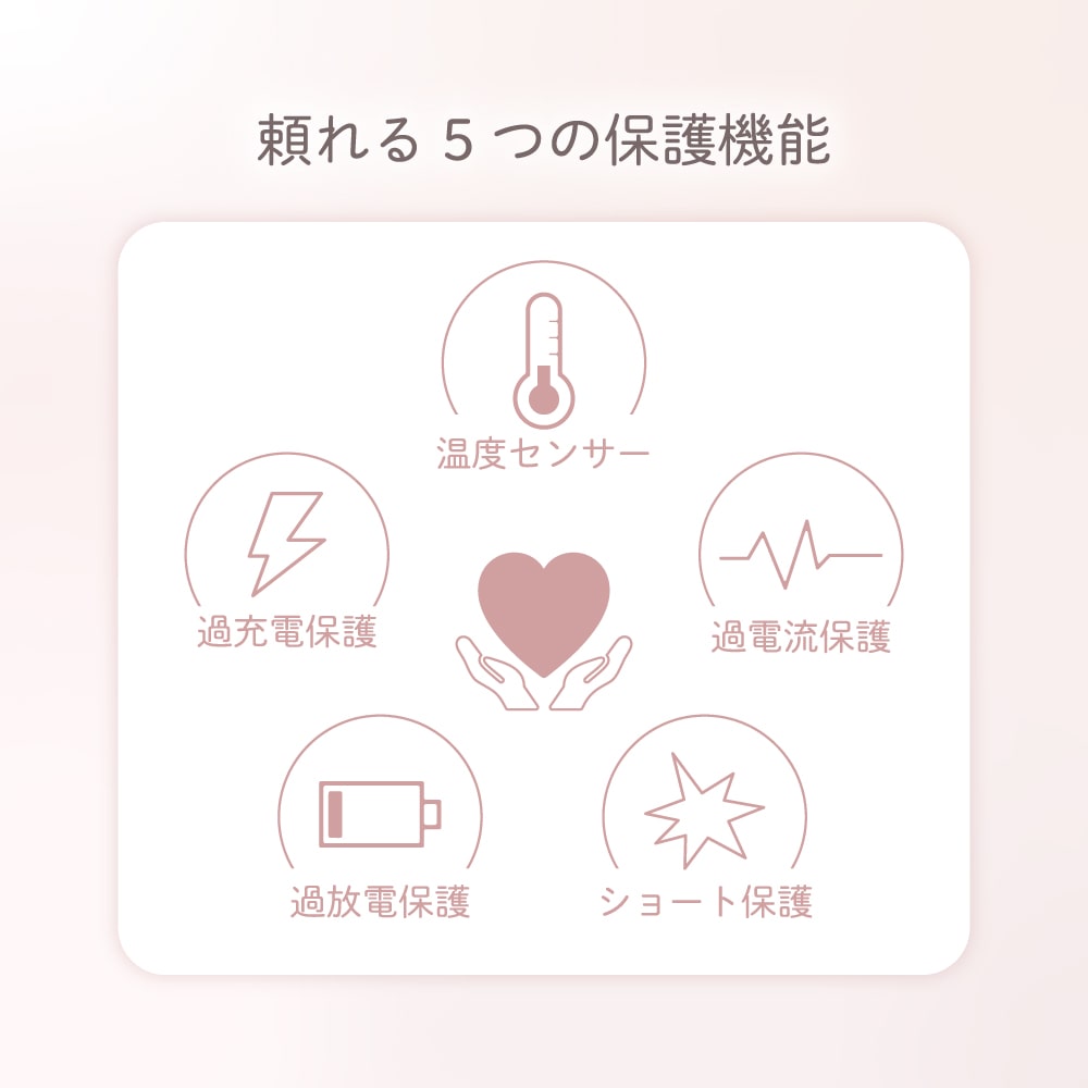 ・温度センサー、過電流、過充電・過放電保護、ショート保護機能搭載