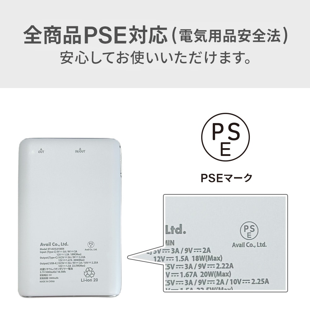 定格出力Type-Cポート(PD)DC5V/3A、9V/2.22A、12V/1.67A(最大20W)