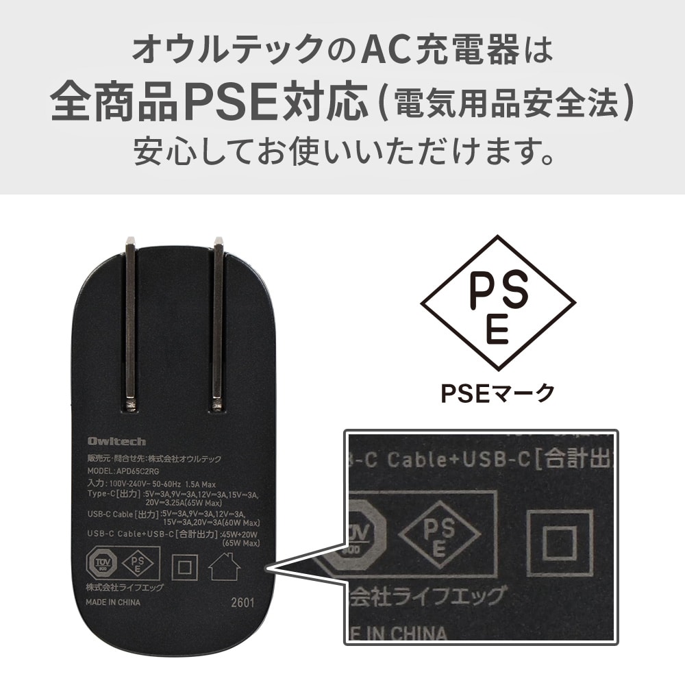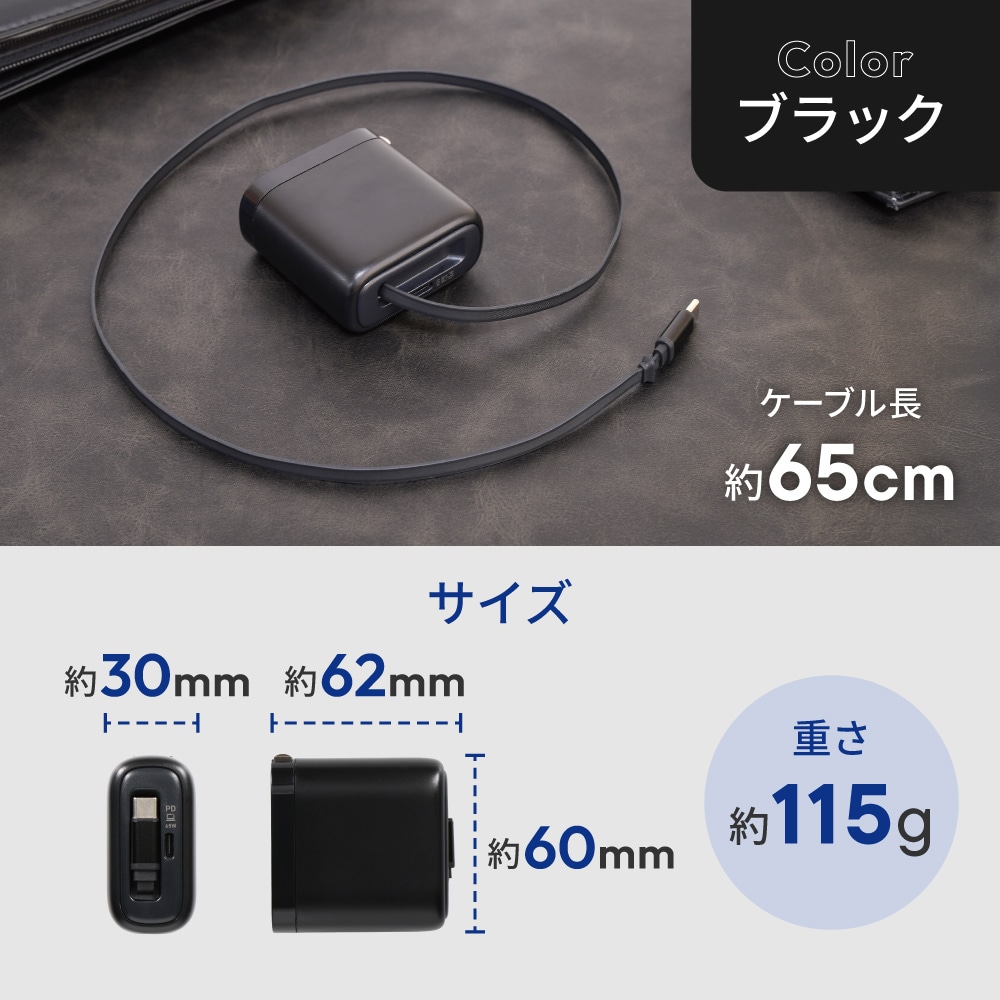 Type-C巻取りケーブル+Type-Cポート:合計出力45W+20W (65W Max)