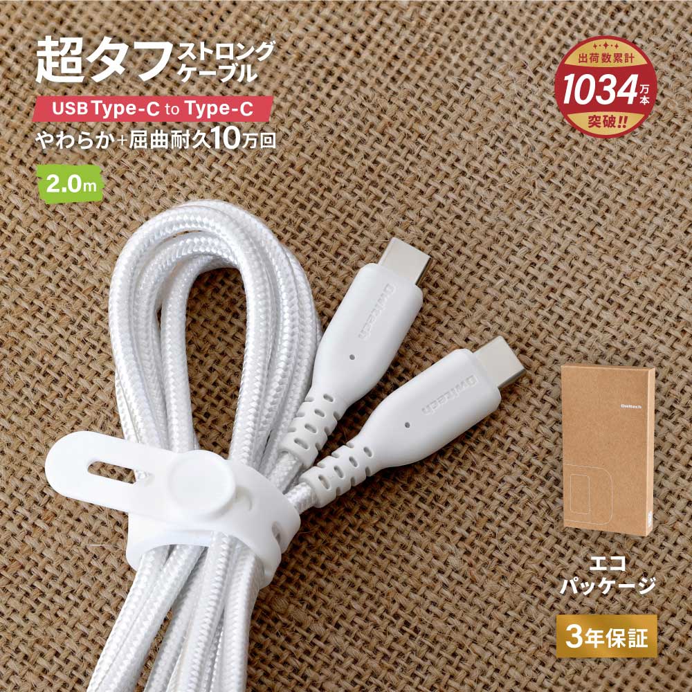 Type-C to Type-Cケーブル 2m ホワイト やわらか超タフで断線に強い 耐屈曲10万回以上 PD60W充電/データ転送(WEBショップ限定)