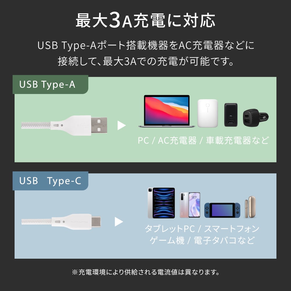 ・最大3Aの急速充電/データ転送対応