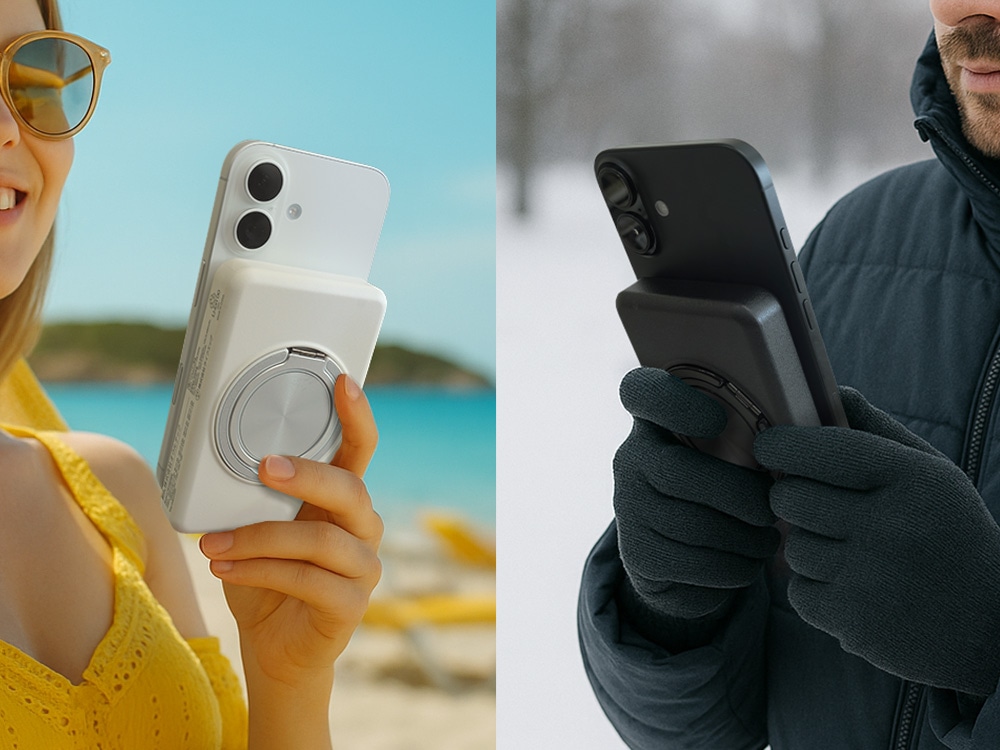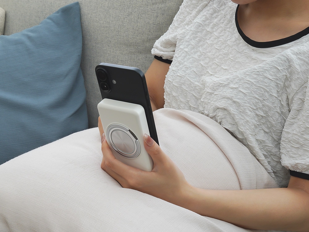 準固体電池採用 マグネット式ワイヤレス充電対応 モバイルバッテリー 10000mAh ホワイト 最大PD30W対応 USB Type-C入出力 スマホリング搭載