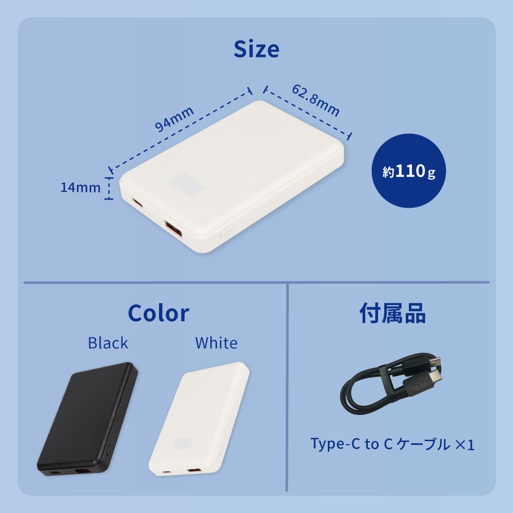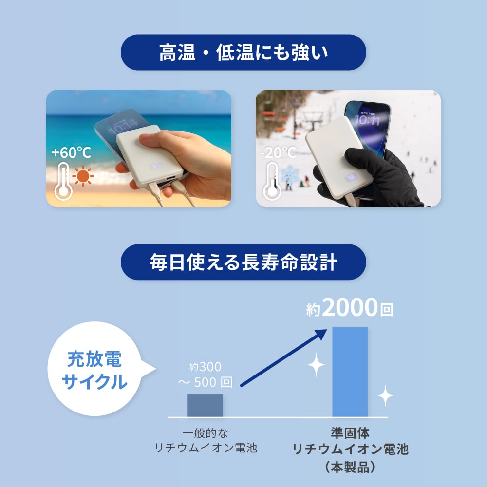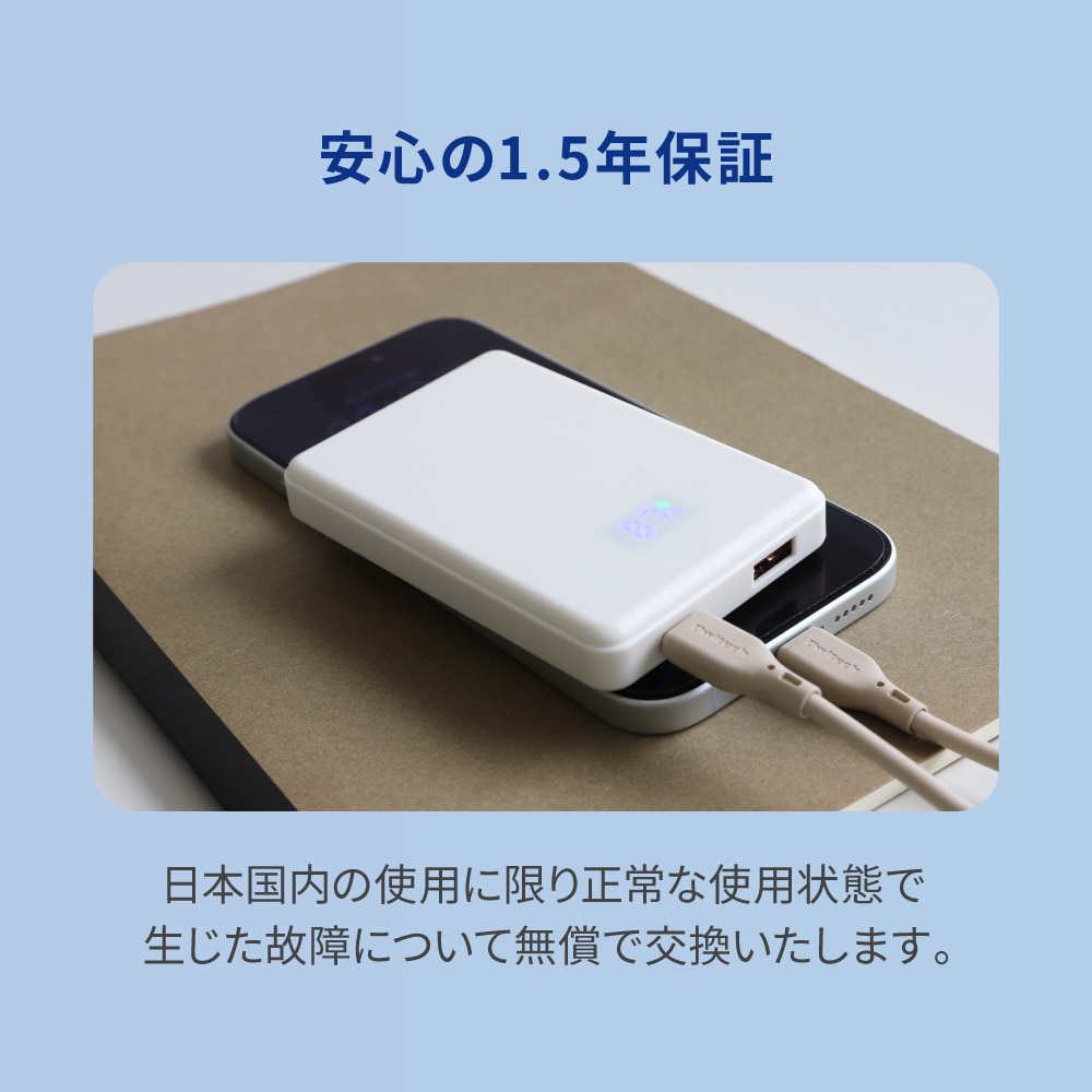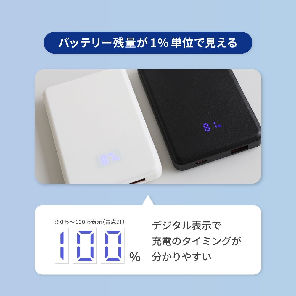 準固体電池採用 モバイルバッテリー ホワイト 5000mAh デジタル表示搭載